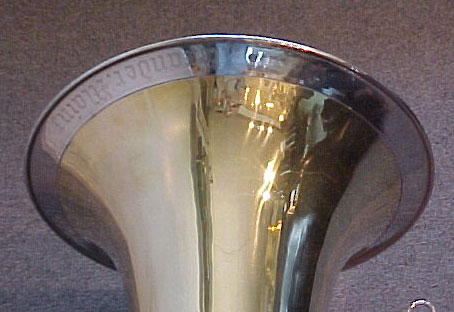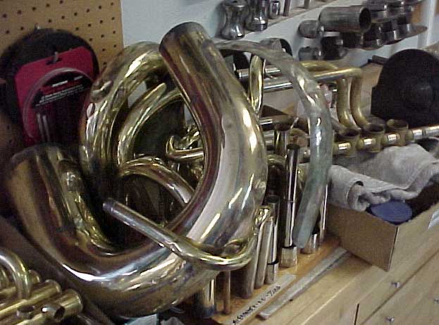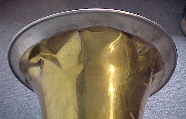 One more big problem was the fifth valve and the mouthpipe. The valve was installed later and was not done really well. Dan cleaned it up and made the needed corrections including new matching linkage. The original mouthpipe had holes in it and was made with a receiver that took the larger shank mouthpieces. Dan fabricated (by hand) a new pipe that was the proper size and shap but altere the receiver dimensions so it accepted the more standard size mouthpiece used today. The pipe is constructed in such a way that one can not tell it is not original.