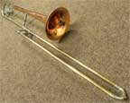 Serial No. 9289XX. Early 1960s. You know, the onewithout the "F" attachment. Here is an opportunity that does not come along every day, an Elkhart symphony bore trombone with a red brass bell and a great slide. These babies are hard to find so if you have been looking for one don't hesitate.