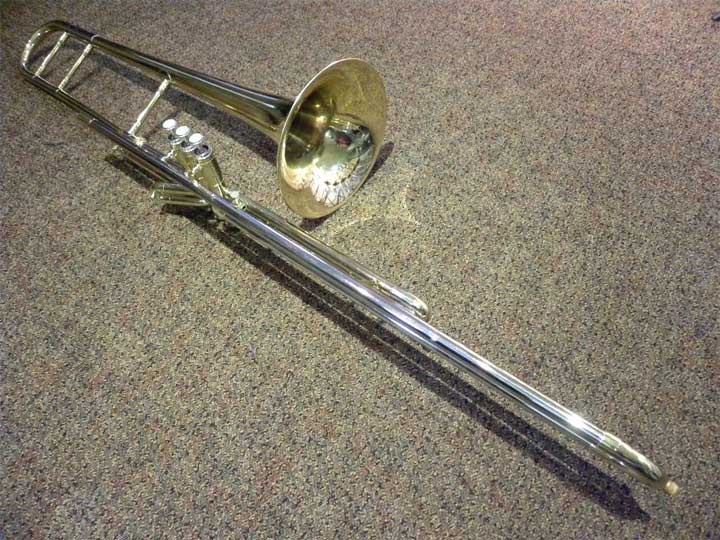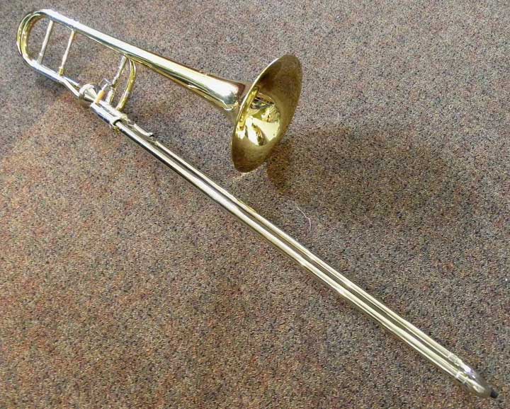Serial No. 855XXX, A very popular tenor, This is in about as nice a condition as one could hope for in a gently used and well cared for trombone; Conventional wrap configuration rotary valve F attachment. Excellent advanced band horn. Comes with original hard shell case (also in real good shape).