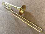Canadian Brass tenor" :Serial No.9X, A real interesting and fine playing tenor trombone, endorsed by the famous brass quintet from which it gets its brand name. Very good original condition, excellent valve and slide action. Red brass bell with open wrap F valve configuration. Comes with original hard shell case (also in real good shape). Completely serviced prior to sale. Call for details.