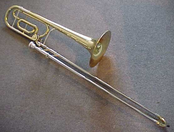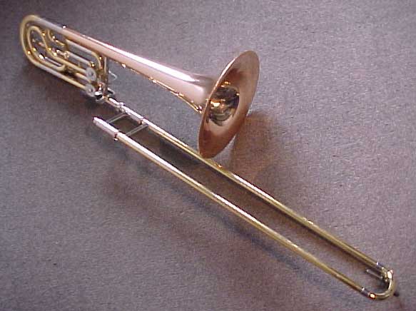 Serial No.993XX, A fine intermediate quality trombone with rotary valve F attachment. Great for the High School player or adult musician on a tight budget. A great option over much more costly available models. Nice lacquer finshed brass.Completely serviced at time of sale. Comes with original hard shell case.